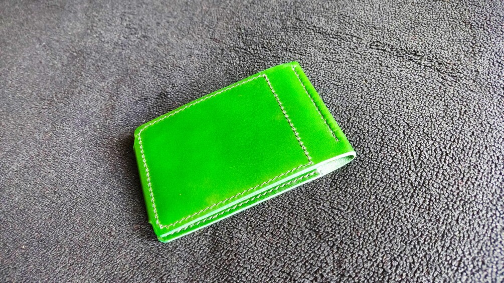 Stylish leather money clip with built-in ID slot and detailed pattern for DIY.